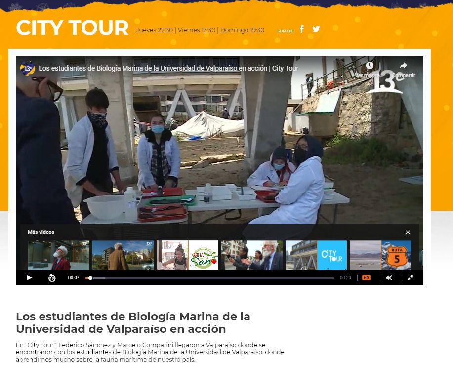 Los jóvenes conversaron con ambos personajes de la televisión, mientras disectaban y clasificaban las muestras de estudio de una de las especies de tiburón que habita en Chile, el Tollo Negro de profundidad, demostrando tener amplio conocimiento sobre condrictios (tiburones, rayas y quimeras), junto a otros temas atinentes a la Biología Marina.